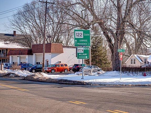 Prime commercial location at the intersection of 122 and 122A! Zoned as "Village Mixed Use" - the possibilities are endless with this beautiful 1.65 acre plot directly on the Blackstone River! Property currently houses a 3 bay auto garage, single family home, 2 large sheds, and a gorgeous riverfront view. This lot is well suited for a variety of development and commercial opportunities. Don't miss this!
