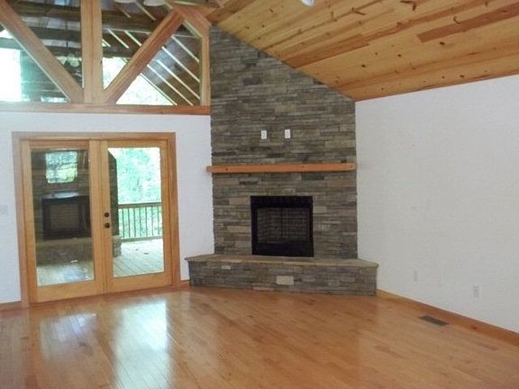Beautiful 2 bedroom 2 bathroom home in Tarheel! Great Location within walking distance of Lake Hiawassee, & forest service property, wood sided cabin with large open great room with hardwood floors and wood ceilings, custom kitchen, large bedrooms, and full unfinished basement. Covered porches to enjoy nature & the mountains. Fireplace on back covered deck too! Paved access & in gated community!