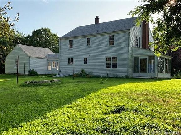 Classic Colonial with great access to I-84 and Hartford or the Mass line, 10 minutes to Storrs/UConn, 20 minutes to Willimantic/Eastern. Home sits back off the road and has many updates including, new roof, new garage doors, new hot water heater, new refrigerator, newer furnace, fresh paint and gleaming hardwood floors. Kitchen has double wall ovens, center island and tons of cabinetry with large walk in pantry on first floor. Dining room has twin built in hutches, bay window and living room has a built in bookcase and fireplace as well as two doors to screened porch with jalousie windows. Bedrooms are generous with tons of closet space, attic has a huge finished room and there is a finished lower level family room with fireplace. Home is in pristine, move in condition.