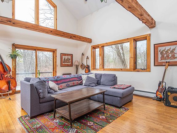 Welcome to your dream Vermont retreat. Tucked away on 15.6 private acres at the end of a quiet country road, this 2-bedroom, 2.5-bathroom home offers an inspiring blend of rustic elegance and modern comfort. Surrounded by mature oaks and sweeping views of Mount Monadnock, Black Mountain, and the rolling green hills. This home features classic post & beam construction, soaring cathedral ceilings, and an open, sunlit floor plan designed for peaceful and effortless living. Nearly every room frames the landscape beyond—rolling hills, distant peaks, and the ever-changing Vermont sky. Step out onto the spacious deck to take in the stillness of nature, or settle into one of the home’s many cozy nooks for a quiet morning with coffee and birdsong. The thoughtfully designed interior includes generous bedrooms, a well-equipped kitchen, and a warm, welcoming living area rich in natural wood textures. After a day spent exploring your own forested acreage, relax and recharge in the private sauna—your own secluded sanctuary. Conveniently located near Brattleboro and Mount Snow, with easy access to local rivers, trails, and the region’s beloved swimming holes, this one-of-a-kind Dummerston property offers a rare opportunity to live immersed in Vermont’s natural beauty—whether as a full-time residence or a peaceful getaway.