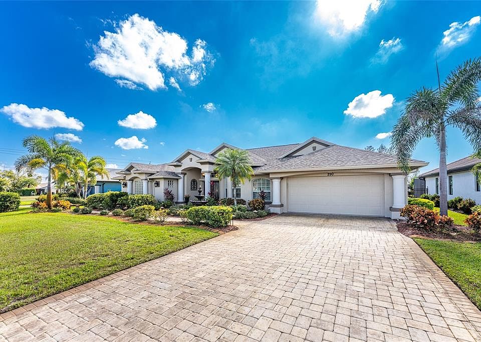 WELCOME TO YOUR SLICE OF PARADISE IN ROTONDA WEST — an iconic, deed-restricted MASTER-PLANNED COMMUNITY thoughtfully arranged in a distinctive circular layout, with 26+ miles of picturesque canals and lush greenbelts winding through each “slice” of the community. Nestled in the White Marsh section — one of Rotonda’s most desirable neighborhoods — this is 290 Rotonda Blvd East, a former BUILDER'S MODEL. This 3-bedroom, 2-bath, 2+ OVERSIZE GARAGE estate spans 2,397 sqft and is loaded with both the GOLD AND PLATINUM UPGRADE PACKAGES — every premium finish and custom detail imaginable in this ST. MAARTEN FLOORPLAN. ** NO FLOOD INSURANCE REQUIRED ** LOW HOA FEES ** Step inside to find European Cherry wood kitchen cabinets, a custom entertainment center in the family room, Carrera marble window sills, columns and arched niches throughout, tray ceilings, and crown molding in the formal dining room with porcelain wood-grain tile flooring. The kitchen is a chef’s dream, featuring a large center island, tumbled marble backsplash, granite countertops, spacious walk-in pantry, and premium appliance package. The breakfast nook showcases a corner window design — two oversized windows set at a 90-degree angle — creating an airy feel and stunning unobstructed views of the pool and lanai. Won "Best Kitchen" in Parade Of Homes! The SPLIT FLOOR PLAN offers excellent privacy. The primary suite includes a spacious walk-in closet with custom built-in shelving and a large private en-suite bathroom with a dual-sink vanity, private toilet, updated waterfall faucets, a soaking tub, and an ALL-TILE walk-in shower. Seamless indoor-outdoor living is achieved with POCKET SLIDING DOORS that open fully to the screened pool, lanai, and OUTDOOR KITCHEN & WET BAR, complete with a JennAir range, sink, and beverage cooler. The pool area features a SOLAR-HEATED SALTWATER POOL with a quartz finish and aluminum cage, surrounded by lush tropical landscaping on an OVERSIZED LOT with a greenscape backyard — an ideal private oasis for entertaining or unwinding. This home is BUILT TO LAST, with HURRICANE IMPACT WINDOWS & DOORS, ROLL-DOWN FRONT DOOR HURRICANE SHUTTER, STEEL ACCORDION STORM PANELS, insulated garage door, reinforced concrete block construction, engineered roof trusses, and a high-efficiency 16 SEER HVAC system. METICULOUSLY MAINTAINED, major updates include a 2022 ROOF, new rain gutters, cage screens, pool pump, exterior painting, updated light fixtures, HIGH-EFFICIENCY WASHER & DRYER, irrigation system, landscape lighting, SECURITY SYSTEM, and owned solar panels. Why settle for builder-basic when you can own the former model home? This estate-style home is a rare opportunity in a competitive market. Built to last, hurricane-ready, crafted with superior attention to detail, this beauty surpasses today’s basic new construction homes — all while being competitively priced with new builds. Enjoy all that White Marsh in Rotonda West offers: miles of interlocking canals, scenic walking trails, five championship golf courses, parks, playgrounds, and abundant wildlife. You’re just minutes from some of Florida's most beautiful Gulf Coast beaches, Boca Grande, Charlotte Harbor, and the Myakka River — ideal for boating, fishing, shelling, or soaking in Florida sunsets. Don't miss out — book your appointment today! CLICK THE LINKS: PLEASE ENJOY THE INTERACTIVE 3D VIRTUAL TOUR ATTACHED TO THIS LISTING AND EXPERIENCE THE INSIDE OF THE HOME FROM EVERY ANGLE RIGHT NOW.