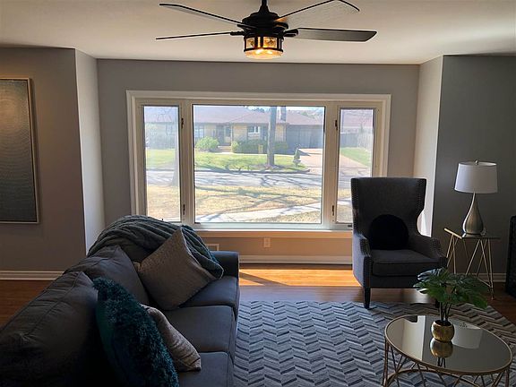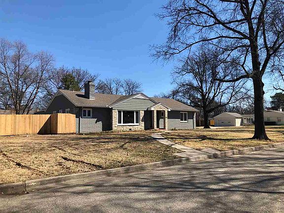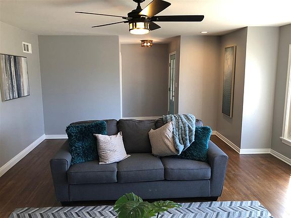 Fabulous sprawling ranch plan in Woodlawn Village! Home has been remodeled top to bottom and ready for you to make your own! Walk in to beautiful hardwood floors and formal living room. Make your way into the kitchen with large island and barstools that overlook another living room and formal dining space. Laundry room located off the kitchen. Oversized bedrooms on the main floor. Spacious master suite with sitting area, walk in closet and vanity area, then additional sink in the large, tile walk in shower space. Covered patio and fenced backyard lead way to the man cave- featuring bedroom and bath space which connects to 3rd car garage. Home sits on corner lot with brand new fence.