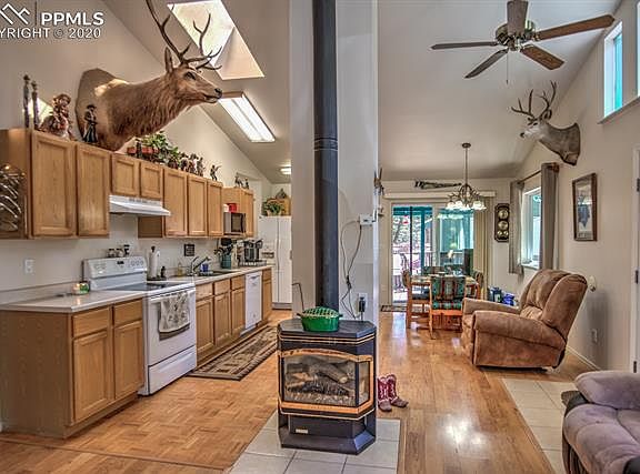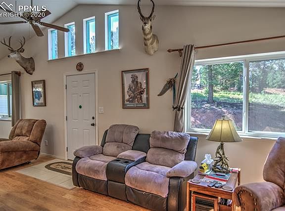 Nicely appointed ranch style home located on 6/10 acre parcel. Equipped with concrete Hardy board siding, for little to no maintenance and fire prevention, and newer vinyl windows, new carpeting and pergo flooring, and a brand new well pump in June! Improved, paved asphalt driveway, & an oversized 2 car garage with shop, at 576 sf! The home features an open, vaulted iving room, kitchen and dining area, w/ centrally located gas freestanding stove to efficiently heat the entire home. 3 bedrooms and 2 baths are flanked by a centrally located laundry room, making laundry day a breeze! Covered porch and deck for entertaining, and attached to a fenced rear yard. A very bright and sunny home with skylights and clerestory Southfacing windows. Located only 1/4 from the paved County road, and just 25 minutes from Woodland Park. World class fishing is within 10 to 20 minutes, snow skiing and the Continental Divide are all within 1 hour of the home, making this a superb location for outdoor activities and amenities!