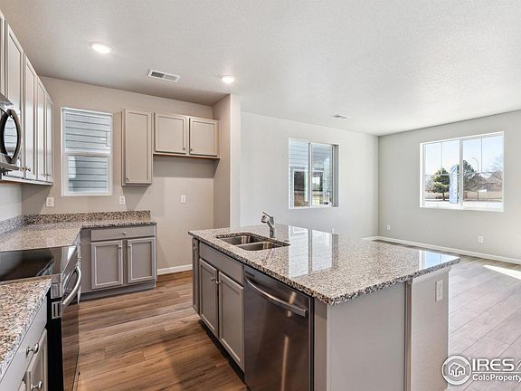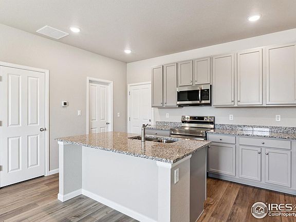 This home is eligible for a below-market fixed interest rate through Landsea Homes' preferred lender, available for a limited time. Terms and conditions apply, contact the onsite sales associate for more information! Welcome to this beautifully designed home, featuring a charming front porch that invites you to relax and enjoy the serene surroundings. Step inside to discover a generous main level, where luxury vinyl plank (LVP) flooring flows seamlessly throughout, offering both style and durability. The home faces west, allowing for an abundance of natural light to fill the space, creating a bright and welcoming atmosphere.The modern design and color scheme throughout the home exude sophistication and elegance, while the spacious upstairs office nook provides the perfect space for productivity or relaxation. The primary bedroom is a true retreat, offering a spa-like en-suite with a walk-in shower for ultimate comfort.This home is energy-efficient, smart home enabled, and is equipped with modern technology to enhance your living experience, ensuring convenience and sustainability. The community offers great amenities including a park and guest parking, while it's convenient location near I-25 and the newly developed Ledge Rock shopping center makes it easy to access everything you need. Don't miss the opportunity to make this stunning home yours!