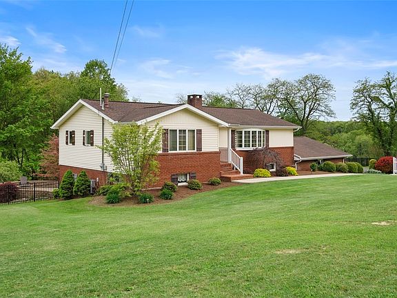 Welcome home to this lovingly maintained 3 bedroom, 2 bath ranch on 2.2 acres. Solid oak doors, trim, and gleaming hardwood floors flow throughout the main level. The open-concept living, kitchen, and dining spaces are highlighted by a stunning tongue and groove cathedral ceiling. The kitchen features granite countertops, an island, professionally refinished cabinetry, and updated hardware. The main bath has been thoughtfully updated with a tiled shower, granite vanity, and new cabinetry. The finished lower level offers a spacious family room with fireplace, full bath, office /4th bedroom, oversized laundry with abundant storage, and a bonus room with wet bar - perfect for entertaining or a man cave. Step outside to a stone patio with fire pit, fenced yard, lush landscaping, and a peaceful, private setting. The attached 2 car garage offers plenty of space for vehicles, tools, and storage. New AC (2024) New Roof (2014) This one-owner gem is move-in ready and waiting to welcome you home!