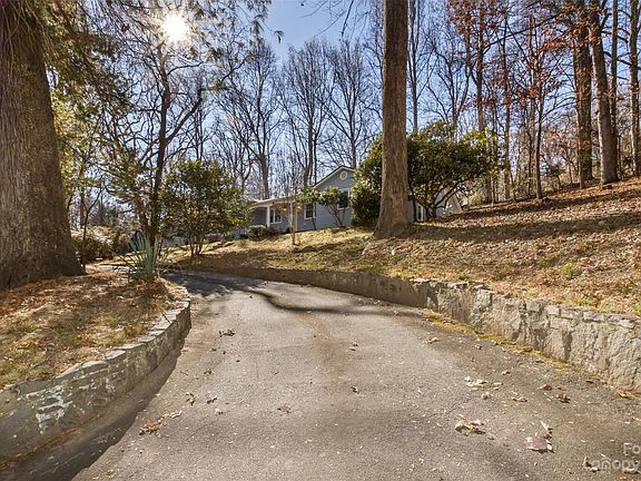 Huge West Asheville corner lot, 0.77 acres, near the **boarding school, Asheville School. 1.5 miles to restaurants and shopping on Haywood Rd. Private lot with mature trees and plenty of parking and turnaround adjacent to the 2-car garage. The primary bedroom has an exterior entrance and was used as a homestay. Enjoy dining on the back deck or a rainy day meditation under the covered front porch. There's also plenty of room for your firepit in the backyard. The mudroom or breezeway between the garage and kitchen would make a lovely office. The kitchen has plenty of space for all the chefs and a breakfast nook with a picturesque window. Hardwood floors in the great room and guest bedrooms are warm and inviting in this 1950 bungalow. Enjoy the crackle of a wood-burning fireplace in the great room. Lot restrictions keep your neighbors from building secondary dwellings. Unbuildable lot across street keeps your view beautiful**. PRICED AT RECENT APPRAISAL!!!