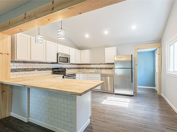 Don't let the opportunity pass you by again to scoop up this home! Buyer lost financing right before closing. Check out this beautifully renovated 3 bed, 2 bath home! Pull into the driveway to see the freshly painted exterior, METAL roof and oversized shed which also has a metal roof! Once inside you'll find brand new EVERYTHING! Kitchen has been completely remodeled with stainless steel appliances and wood countertops- open concept to the living room. Off the living room is a full bath with tub. Newly added is a 1st Floor primary suite including a full bath and walk-in shower. Upstairs you’ll find 2 additional spacious bedrooms. Flooring redone in the entire home! Bonus 1st Floor laundry area. Hot Water Tank, Roof and Furnace have all been replaced in the last YEAR. All this home needs is your personal furnishings and it is turnkey! This home has passed both VA and FHA appraisals for over asking price!