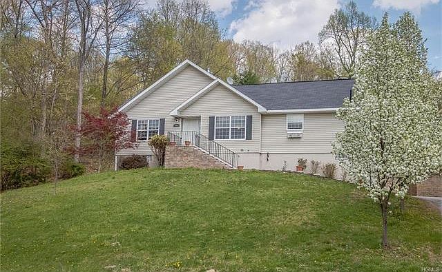 Located in the beautiful town of Highland Mills, this 1575 sq. ft. ranch is nestled upon a wooded knoll with fabulous sunsets and mountain views.The open floor plan features vaulted ceilings with plenty of windows for natural light. Hardwood floors throughout the main living areas and a wood burning fireplace will be found in the living room. French doors from the living room welcome you onto the generous deck sure to fulfill all of your entertaining needs. The open floor plan continues in the dining area and kitchen with hardwood floors, maple cabinetry and again, mountain views. To the left of the family spaces you will find the master retreat, complete with his and her closets and master bath with shower and separate jetted tub. At the other end of the home you will see the 2 additional bedrooms, a full bathroom as well as a laundry room with ample storage. The roof and gutters on this home was replaced in 11/2016. Use of Woodbury Parks and Recreation too!