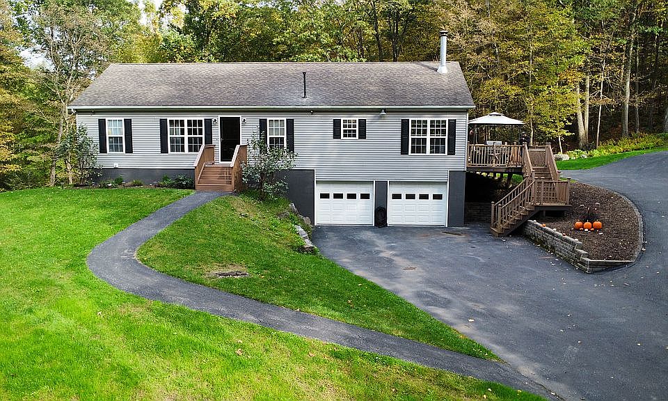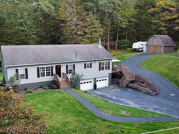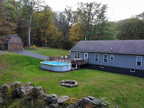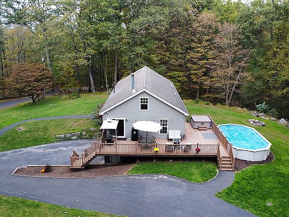 This well maintained house feels like home from the minute you walk in. The living room offers a spacious and inviting space with plenty of natural light and a pellet burning stove for those cold winter nights. The dining room has plenty of space for entertaining, and includes a wood burning fireplace for extra warmth and ambience, the large bright double windows look out to the wrap-around deck, pool, hot tub and back yard. The sunroom flows perfectly into the kitchen area, where you will find an abundance of cabinets and counter space. The openness of the kitchen, dinning room and sunroom make it great space for entertaining, yet the split floor plan gives you plenty of privacy. The primary bedroom offers a large closet, full bathroom with a huge jacuzzi tub and a seperate shower.