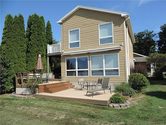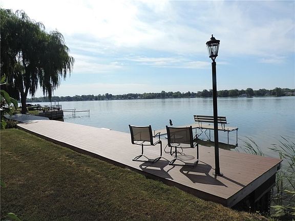 Well Cared for Year Round Waterfront Home-Only Enjoyed in Summer for Past 13 Years! On Long Pond with Access to Lake Ontario, 50' Lot with 40' Side Right of Way Feels like 90'Frontage! 1856 SqFt 3 BD, 2 Full Baths, Big Living Rm/Dining RM with Wall of Windows, Awesome Water View! Hrdwd Floors, Some Carpet, Woodburning FPLC, Sliding Glass Dr to 2 Level Vinyl Deck & Built in Benches, 2nd Floor Vinyl Deck with Dr to 2 BDRM's, New Big Vinyl Dark Brown Dock over Reinforced Breakwall, Alum & Vinyl Boat Dock with Cool Bench Seat, Kraftmaid Maple Glazed Cabinets, Granite Counter, Leaded Glass Accent Doors-Sharp-SS Appls Included, 1st Flr Full Bth with Shower, Tile Floor, Front Room/Entry Foyer, 2nd Floor Laundry, Big Mstr BD, Hrdwd Flrs, Pond Water Views, Dr to Upper Deck, California Closet with Built-in Dresser, Big 2nd BD, Hrdwd Flrs, Door to Deck & Water Views, Great Full Bath, Polished Floor Tile, Glass & Travertine Tile Shower & Skylight, Very Nice, Big 2 Car Garage & Nice Carpet Stays, 3 Car Wide Driveway, Cedar Siding Painted 2010, Architectural Roof 2002, Thermopane Windows, Water Heat Unit 2003, 3 Mini Split Wall AC Units Keeps it Cool, (can also Heat), Enjoy Living on the Water.