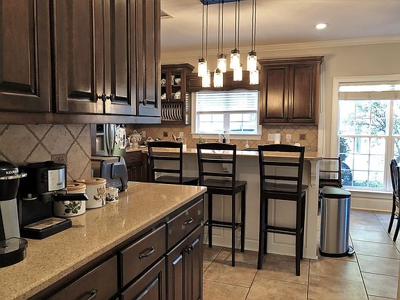 Home warranty for buyer. Beautiful brick custom home. Open floor plan. Large kitchen with FP, custom cabinets. Surround sound, built-ins, hardwood & tile throughout. Perfect for entertaining & active families. Soaring 20 ft ceilings, 2 FPs, screened-in porch, large shaded flat yard. 3-bay attached garage PLUS a detached garage/workshop. Includes golf cart, fantastic neighborhood with amenities, including a stocked fishing pond (POA only $10/mo). Only minutes from Airforce base and new school.