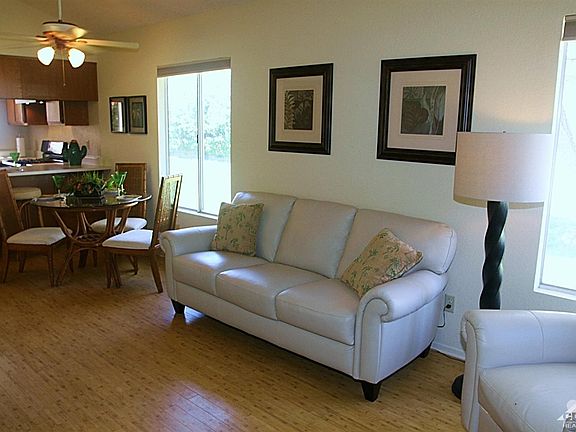 Cozy condo in The Mountain View Falls community. Just minutes away from the Marriot and shopping on the famous El Paseo. Looking for a full time home or a weekend retreat come and explore this community. The condo has been well maintained and is nicely furnished. Step into the living room and enjoy the bamboo flooring. Two bedrooms and two full baths compliment this floor plan. If you enjoy outdoor entertaining great possibilities await you in this backyard, which has a surprising amount of space. Currently the patio has a cover with a mounted fan. The garage is detached from the house but located right off the backyard. A charming community with two pools and spas, a tennis court and basketball court.