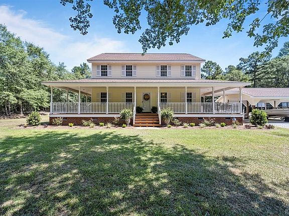 Beautiful custom built home with country wrap porch, screened porch, double carport, detached barn with separate electric and septic. Large master bedroom with double closets, lots of closets (all cedar lined) hot and cold faucets on outside, entire crawl space is lit, on demand water heater,upstairs jetted tub has constant heater, all hardwood interior doors, floored unfinished attic for storage, all exterior maintenance free, Tree House.