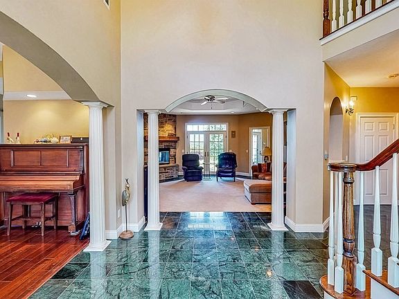 **Multiple offers!** please submit offer before 3:00 Tuesday 8/18/2020. Welcome home! This colonial boasts craftsmanship and attention to detail throughout. As you enter, notice the lovely fountain that is stunning at night when lit up. Greet your guests into the foyer with beautiful marble floors, open stair case and stained glass that the sun hits perfectly when rising. The dining room is ideal for hosting large gatherings. Start up the double sided fire place in the living room that sees through to the cozy breakfast nook. Speaking of the kitchen, the appliances, counter space and large pantry will have you in awe.The master suite provides another fireplace, large walk in closet jetted tub and separate shower. Walk directly out to your patio & catch the beautiful sunsets this property provides. Down the hall is another full bath as well as a study with a third fireplace! Upstairs has 2 more bedrooms, a full bath and a bonus room that could be used as needed.