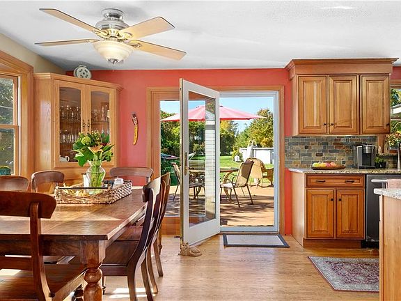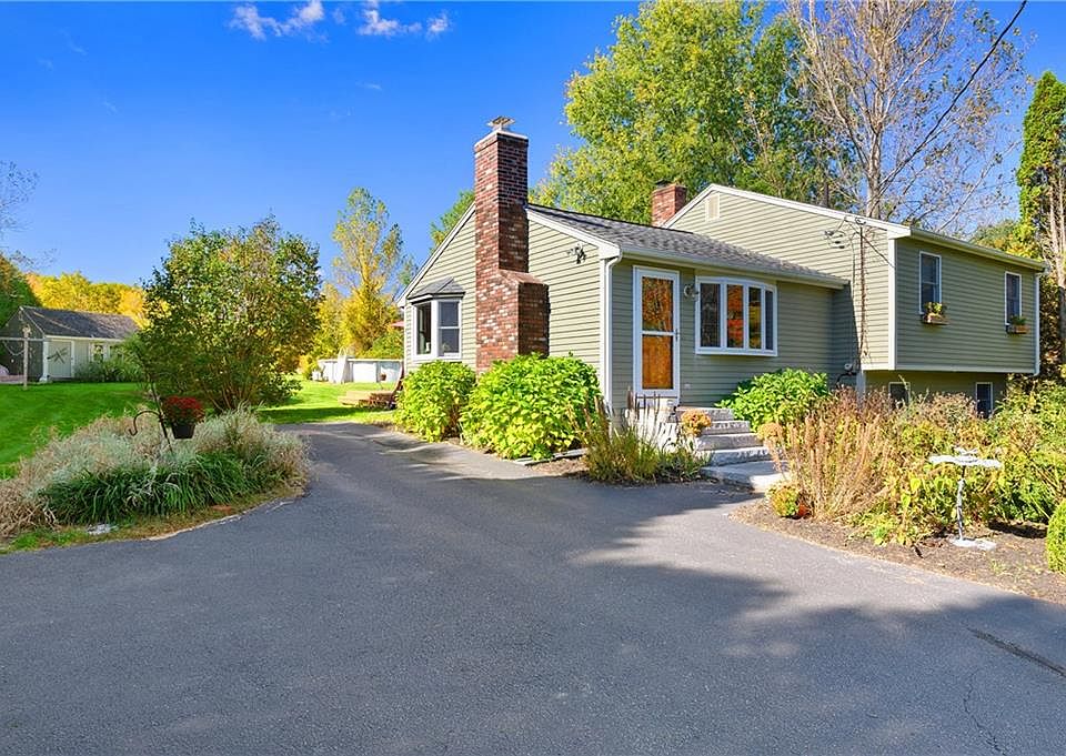 Great split level ranch sits so pretty on 2 acres. This home offers a open floor plan, fireplace living room with cathedral ceiling open to dining area w/ bay window, updated kitchen offers granite counters, plenty of new cabinets and stainless steel appliances all with hardwood floors. Sliding doors to a huge deck to enjoy. There are 3 good size bedrooms, and a nice full bath . Lower level has a large family room, laundry room and plenty of storage. Updated heat system and walk out basement. The yard is beautifully landscaped, garden areas, fruit trees, fire pit, koi pond, above ground pool and large country shed. Yard has a lot of open space to enjoy activities and surrounded by woods for great privacy.