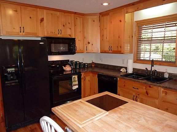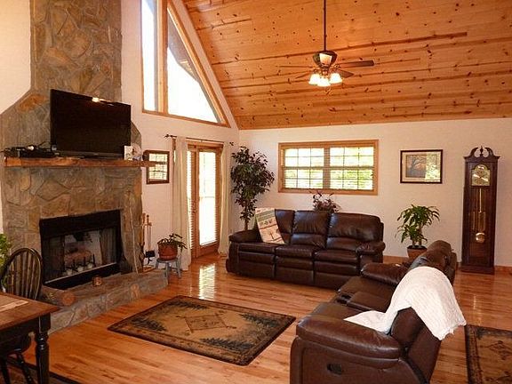 Finest chalet in Murphy NC! This creekfront 2 bed, 3 bath chalet is only 3 minutes from downtown w/ great features! Paved road & d/w, lots of porches & decks, FULL FINISHED BASEMENT w/ mother-in-law suite arrangement, TWO stone fireplaces, HUGE master suite, hardwood floors through main, large living room, basement entertainment room, wet bar kitchenette, 488.15+/- feet of creekfrontage, & more!