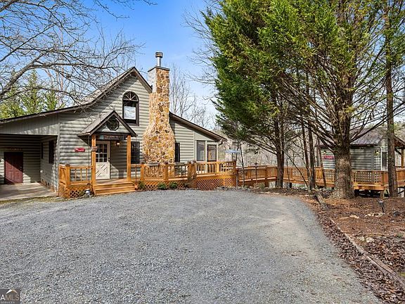 **Ultimate Mountain Escape: Cozy Cabin in My Mountain Subdivision** close to everything our mountain town has to offer. Discover your mountain retreat in this enchanting 2-bedroom, 2-bathroom cabin, nestled deep in the popular My Mountain subdivision. Rustic cabin with plenty of outdoor space, large decks with beautiful log furniture, small screened porch sitting area for enjoying that morning coffee. large kitchen with plenty of counter space & cabinets, - this cozy retreat is crafted for those craving authentic mountain living, whether for thrilling weekend adventures, inspired remote workdays, or full-time serenity amid nature's embrace. Inside, soaring vaulted ceilings and a crackling stone floor to ceiling fireplace welcome you home, illuminated by brand-new updated light fixtures. The heart of the cabin is its open kitchen, seamlessly blending into the living space, natural light filtering through picture windows. Retreat to the two serene bedrooms, Main level bedroom is large enough for a sitting/reading area. Recently added shower upstairs boasts a unique galvanized metal shower with swinging door. Cabin has a carport where you can park a car or golf cart- to explore all the scenic roads in the subdivision. Step outside to your private oasis: sink into the hot tub on the deck, lights twinkling to the path overhead to the bonus room. This cabin stands out from the crowd ! It has whimsical separate treehouse perched among the trees, featuring a space-saving Murphy bed for adventurous kids, visiting guests, a secluded office or yoga studio. Newly installed mini-split ensures year-round comfort, from balmy summer evenings to chilly fall mornings. Surrounded by gentle slopes, whispering forests, and a small branch at the bottom of the property-this haven connects you to close proximity to hiking, mountain biking, and white water adventures.. Less than 15 min to downtown Blue Ridge shopping and fabulous dining. Move-in ready, turnkey perfection awaits.