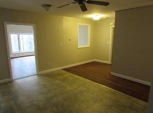 Great Location with a Great View of Downtown New Bedford. Townhouse style unit located above the Fortuna Grill (which is closed). Kitchen, living, dining, Laundry & Bathroom on the main level & 3 Bedrooms upstairs. Good Sized apartment, Huge Livingroom. Bedrooms are on the small side. Hardwoods throughout. Wide Staircases. Behind building there is a public parking lot that's free after 5pm. Metered parking is plentiful, free after 5pm