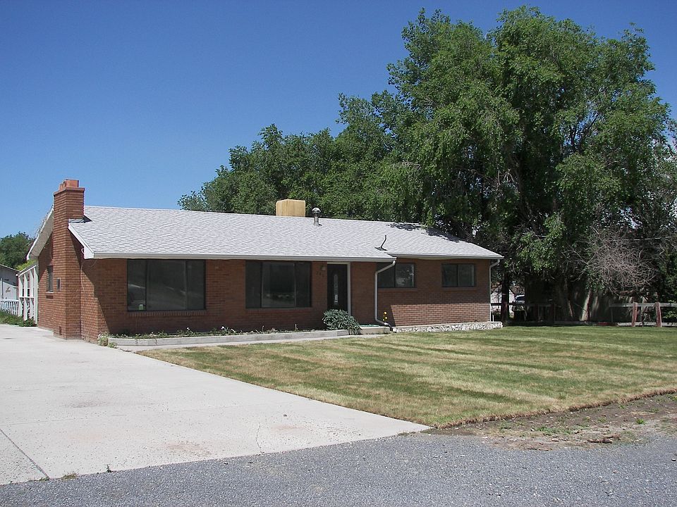 New paint, new carpet, new front lawn with new sprinkler system. A fireplace with a wood stove insert is located in a large family room. There is also a large front living room, spacious kitchen, and a newly remodeled bathroom. The basement has an outside entrance onto a covered patio. There is a large garage, workshop and an open shed for animals. There is also another enclosed shed adjacent to the garden area.