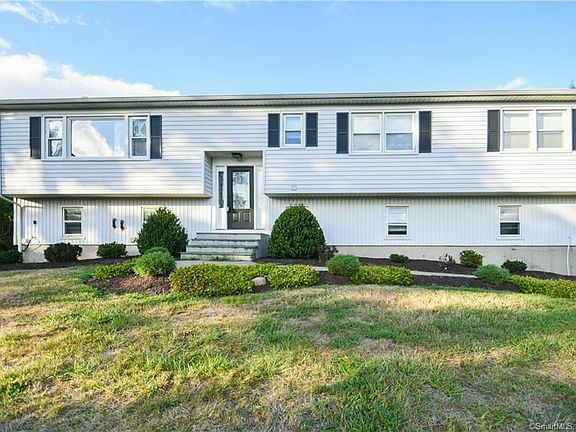 Welcome to 290 Wallingford Road This bright and airy raised ranch set on almost an acre offers four bedrooms and three baths...but most importantly - the kitchen dreams are made of Upon entering, a few steps up lead to the stunning kitchen with beautiful quartz countertop and huge island with crisp white cabinetry, timeless backsplash, stainless steel appliances, wine fridge, beautiful sink and even a pot filler over the stove. The adjacent dining space with slider leads out to deck overlooking the yard and connects with the large family room. The oversized window offers orchard views and hardwood flooring throughout complete the main living area. Down the hallway are three bedrooms including the huge master bedroom suite with a renovated bathroom with a beautifully tiled glass enclosed shower, double vanity area and attached walk in closet. Two additional bedrooms with hardwood flooring and large closets and another full, updated bathroom complete the upper level. Downstairs is the access/entry to the 2 car garage, a full bathroom, the fourth bedroom and a large recreational space with pellet stove. A slider leads out to the back yard and the laundry/storage space is also on this lower level. There is a fenced in yard with fire pit, shed for additional storage and plenty of privacy for enjoying the outdoors. Schedule your tour today