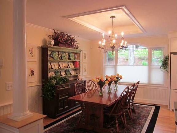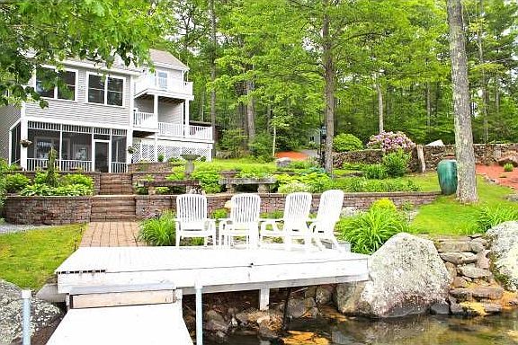 Finally a home REALLY ON THE WATER... Lake within feet and in full view. See the lake from all windows. Walk down a few steps to private dock. Architect used very best materials & craftsmanship. Fantastic floorplan. IMMACULATE**LIKE NEW**Condition. Bright, open Kitchen,Dining Rm w/elegant details -chandelier-tray ceilings, LivRm to cozy up by crackling fire (gorgeous stone fireplace), Private Office w/balcony, Lower Level Fam Rm. Gardner's delight:stonework terraces, sunny patio by water, well constructed dock, get in your boat or swim to raft. Outside hot shower, enjoy your cookout on balcony or within screened porch. Everything reflects ingenious attention to details: stained glass with loons, 15 closets, 4 zones heat/AC, custom shades, sleepover area for kids... Woodwork not seen in homes this price, finishing touches in every corner. A real **Designer GEM** Great for year round or a summer home with NO repairs in sight. Just enjoy SUNSETS, MOUNTAINS, LAKE. Listen to the loon