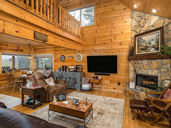 Welcome to your daily sunrise paradise! This exquisite 4-bedroom, 3-bathroom home offers perfection at its finest. Revel in the sweeping, long-range views that radiate tranquility each morning. You'll find comfort and elegance with three gas log fireplaces, including one in the primary bedroom with an en-suite bath. The main level showcases a stunning rocked fireplace in the great room, complemented by a rocked island in the kitchen featuring brand-new stainless steel appliances, including a Knock fridge and a gas stove with dual convection oven and a lovely dining area. Terrace Level boasts two additional bedrooms, a bath, family room and workshop in the basement providing space for your hobbies and projects, (STR OK), high-speed fiber optic internet and there's a walking trail for leisurely strolls.~Located within the prestigious, gated community of Big Sky, this home is a stone's throw away from the enchanting Cohutta Wilderness, offering endless outdoor adventures.