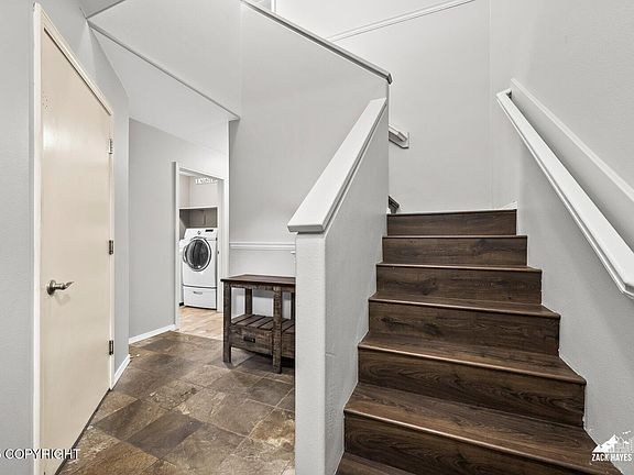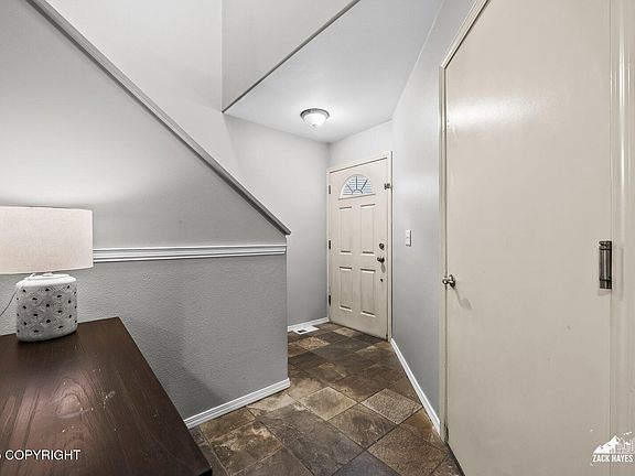 Updated Anchorage Townhome with Granite Kitchen, New Flooring & Mountain ViewsWelcome to this beautifully updated townhome in a well-maintained, planned development featuring streetlights, mountain views, and quick highway access for an easy commute. Designed with a reverse floor plan, the upper level offers an open-concept living space filled with natural light, vaulted ceilings, and a cozy gas fireplace with insert. The kitchen has been tastefully updated with brand new granite countertops, and all appliances stay, making this home truly move-in ready. You'll also love the newly installed laminate flooring throughout the upstairs, adding both durability and modern style. The primary suite features a private bath and walk-in closet, offering comfort and privacy. Downstairs, two additional bedrooms provide excellent separation of space, with direct access to a fully fenced backyard ideal for a garden, playset, or backyard gatherings. Other upgrades include fresh interior paint, satin nickel fixtures, and ceiling fans throughout. Enjoy low-maintenance living with HOA dues of just $167/month, which cover water, sewer, and all exterior maintenance helping reduce both insurance costs and upkeep responsibilities. This home blends style, space, and convenience in one of Anchorage's most accessible locations come see it today!