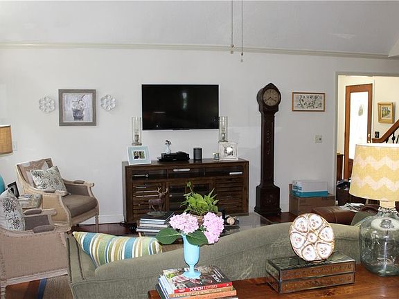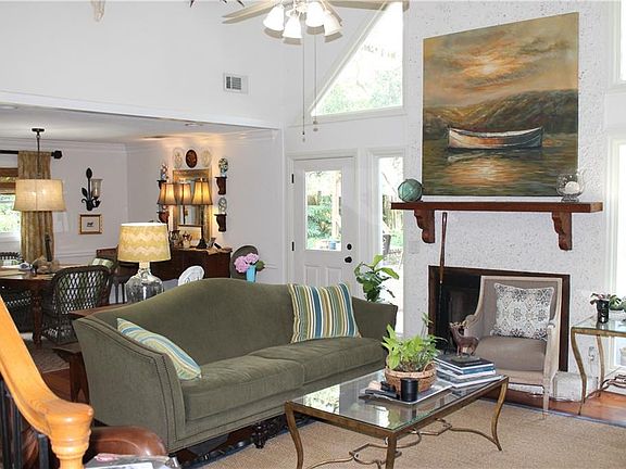 PRICE REDUCED T0 $405,000 AND NEW ROOF!Great popular neighborhood with nice homes and beautiful trees. Bike path along Frederica Rd. Good area for walking or biking. Three bedrooms with master on 1st. One upstairs bedroom is an office or "man cave" with lots of custom shelves and storage. Hall bath serves the 2 bedrooms. Living room has a vaulted ceiling, wood floors and gas log fireplace. Kitchen has been renovated with granite countertops, tile floors and appliances are about 2 yrs old (gas range and oven, Subzero wine cooler, and refrigerator with freezer.) Limestone floors in foyer and powder room. Backyard has a privacy fence and is great for relaxing, gardening and treehouse. There is a firepit and a tiered wood deck. The windows and exterior doors have been replace about 2 years ago. HVAC was replaced about 3 years ago. The front yard has new sod and landscaping done a few months ago. New garage doors too! This has been a great home, but owners need more space!