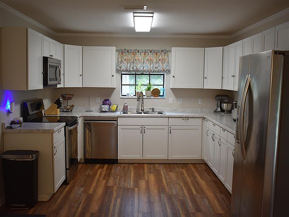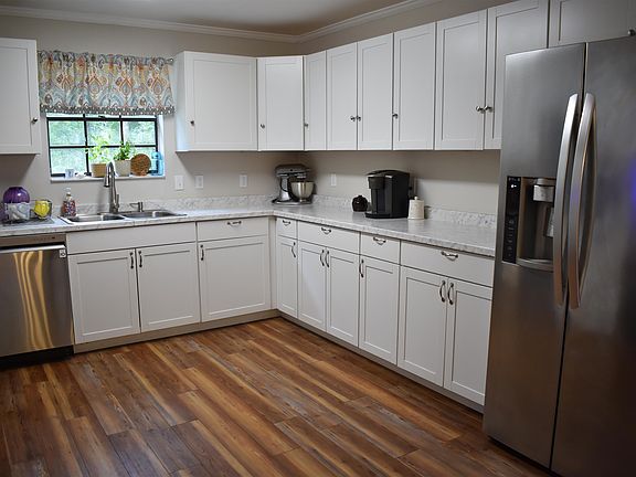 Enjoy Outdoor Living in this Well Maintained, Move-In Ready Home on 3.41 Acres with Privacy! Large Eat-In Remodeled Kitchen w/Newer Cabinets, Counter Tops, Stainless Steel Appliances and Sink; New Light Fixtures and Ceiling Fans, Remodeled Bath; Crown Molding; Luxury Vinyl Plank Flooring; Brick Fireplace; 2020 Metal Roof; Water System Air Conditioner; Security System; Garage; Storage Barn w/Covered Area for Parking Lawnmowers and Such...Easily Convert to Horse Stalls or Chicken Pen; On West Side of Jefferson County so Easy Access to Amenities in Tallahassee or Monticello via I-10, 90 or Apalachee Parkway; Property is Bordered by Narrow Strip of Hard Woods Providing Natural Privacy Barrier; Selling "AS IS"; Come and See!!