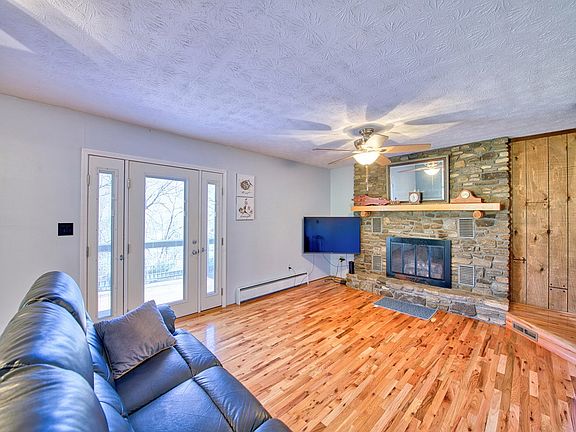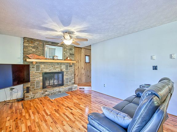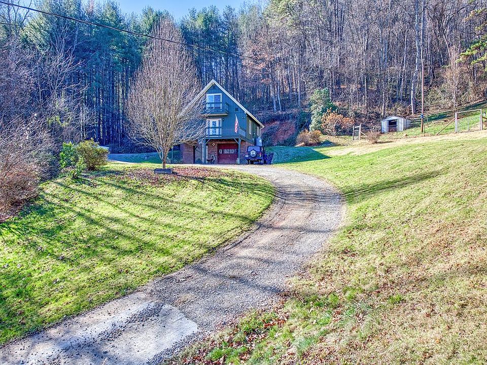 Looking for private, unrestricted, cleared land for your mountain home? Newly remodeled kitchen and bath with one-of-a-kind granite, stainless appliances, gas range. Main bath, freshly updated with custom tile, granite, and lighting. Large living/dining great room with gas log fireplace, stone surface with built-in heat blower and new doorway to the full-length deck to enjoy the view with your morning coffee, evening beverage! 2 bedrooms and a full bath upstairs, along with a balcony deck. Enter the home through the basement garage/workshop (with wood stove for heat, tankless water heater, and washer/dryer), or enter on the main floor kitchen entrance. Plenty of room for parking, bring your RV, work trailer, tractor, etc. Fenced area for animals and cleared, level Spectrum High Speed for TV and Internet.
