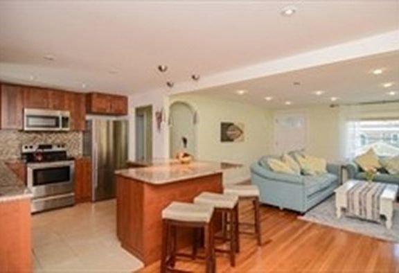 Beautiful single-family ranch with a spacious open floor plan. Incredible location near the Mass Pike, Route 95, Newton public schools, and a half-mile from Newton Highlands T stop on the Green Line. This home features a flat fenced-in back yard, central air, hardwood floors throughout, and recessed lighting.The gorgeous eat-in kitchen offers stainless steel appliances, granite countertops, and a breakfast bar. Open & spacious living & family rooms with direct access to the huge deck make great places for relaxing. The finished basement with a perfect playroom/office includes access to the garage.