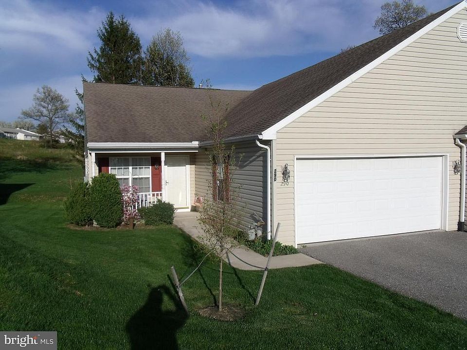 Perfect Ranch Style End Unit Condo , 55+ community, Formal Living Room, Beautiful White Kitchen with tons of Cabinetry w Pantry - Opens to Dining Area with Hardwood Floors, Family room w Serene Views of a Private Wooded Rear Area, Great for Hot Afternoons and Evening Shade, 2 Bedrooms and 2 Full Baths w Laundry on this Level,Full Unfinished Lower Level w level walkout to concrete patio- Water Proofed, plumbed for another bath, Oversized 2 Car Garage w additional parking., Community Center with a fitness center, Club House, year around heated indoor pool w spa ,hot tub,shuffleboard, social groups, Bingo, pond, walking trails, ride your golf cart thru this community, picnic areas. RV parking and boat storage facility. Relax and Enjoy Care Free living. Condo Fee includes outside maintenance, snow and lawn care,Recreation Facility, Reserve Fund,Common Grounds.