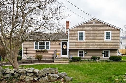 Walk to the beach from this beautifully cared for home in Marshfield!! Set on generous, level lot, this multilevel home offers so much! The living room with its tasteful beach theme features hardwood floors and a vaulted ceiling. Newly remodeled kitchen features white cabinets, stainless steel appliances, dining area and an impressive amount of storage space! Upstairs the master bedroom is substantial with two sets of closets! This room could easily be turned into two! Recently renovated bathroom and additional bedroom complete this level. The finished basement is a huge bonus with wood burning stove, laundry room, and half bath. Tons of updates throughout including brand new pvc trim on the exterior, newer roof and windows. Plus, an outdoor shower, perfect for rinsing off after a day at the beach which is only a 5 minute stroll from the house! Enjoy the Marshfield lifestyle in sought-after Rexhame!
