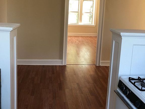 This lovely updated unit has big windows with lovely tree line views, nice size bedrooms with roomy closets, ample street parking. hardwood throughout, an open concept kitchen with a large pantry and vintage touches. Coin Laundry in the building.