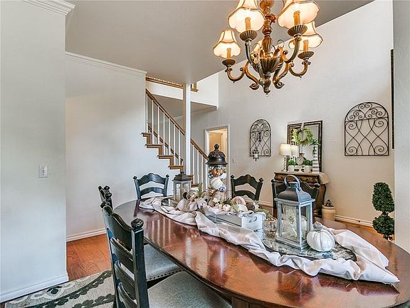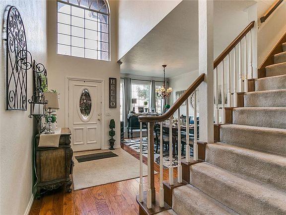 Beautiful Edmond home at the end of the Cul De Sac. Home is situated with a high vantage point nestled back in the lovely Asheforde Oaks neighborhood. Close to the new movie theater, I-35 and town. Home has soaring ceiling in the entryway that opens up to the formal dining room. Large eat in kitchen with Island that flows into a sitting area with a double sided fireplace. Both rooms have large windows that look out to the back yard. Large Primary bedroom with en suite is downstairs. 3 more bedrooms upstairs and a bathroom. Tons of space for everyone or a home office as well. 3 bay garage makes this a winner! Tenant moving out Dec 1.