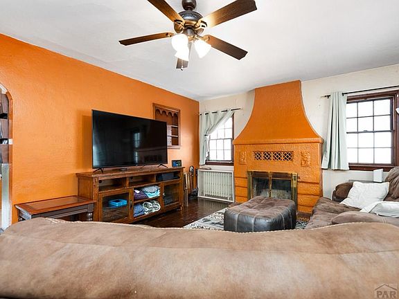 Come and see this remarkable cozy home!!! 4 bed 2 bath 3 car garage on a LARGE corner lot. Wrap around enclosed porch with sun lights, and equipped for a hot tub!! SPACIOUS living room , kitchen and dining room. Wood burning fireplace in living room. Features original hardwood floors, and tiled kitchen and dining room. LARGE family room in basement with room for(and currently used for) indoor theatre!! Basement also features a bedroom with egress, 3/4 bath and large laundry room. Privately fenced back yard and the playground will stay!! 3 garden/storage sheds for your tools or toys!! Tile roof on home and new roof being installed on the garage. Close to shopping, restaurants, and movies. Also an easy jaunt to I-25 and Hwy 50!! RV Parking. DON'T LOSE OUT!!!