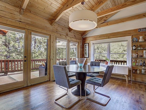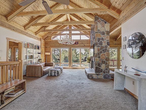 Cant beat this deal! Log Style Mountain retreat in Chaparral Pines Golf Club among Tall Ponderosa Pines w/ an instant club lifestyle. Nestled on a half acre corner lot and only steps away from the Trailhead pool,gym,playgrounds,dog park,yoga,volleyball/pickleball,soccer/softball field and tennis. This home is warm and inviting you will feel the owner pride instantly. Main level no steps,stone & wood throughout w/ tall windows walls, exposed beam wood trusses,wood floors, 2-way Stone Fireplace, great room all open and light.The main level master suite has a walk-in shower and Closet w/ a private view deck.Walkout basement w/ 2 bedrooms/bathroom/family room & private patio.Trex decking,flat paver driveway, oversized garage w/ cabinets & storage, Low maintenance metal roof.