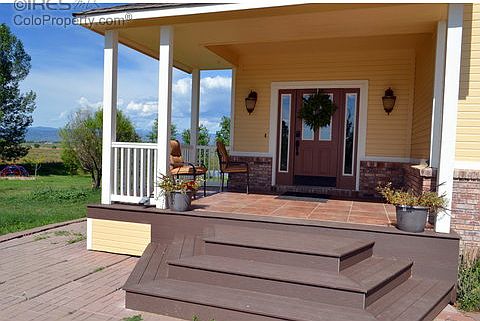SOLD BEFORE PUBLISHED. Water and mountain views. Newly refreshed hardwood throughout. Updated bathroom vanities and fixtures. Remodeled kitchen includes stainless refrigerator, gas-range, built-in microwave, and solid-surface counters. New interior/exterior paint. Newly expanded entry veranda. Walk-out finished basement. Property features 24' x 96' six-stall barn, 24' x 30' heated garage, and fully fenced perimeter. 1/2 share of Northern Poudre Irrigation Company Water valued at approx.$35,000.