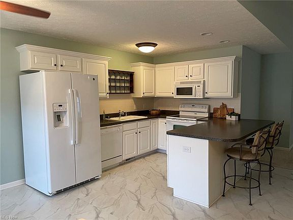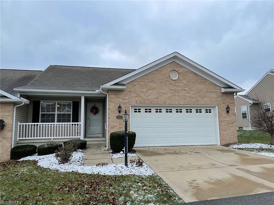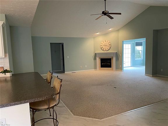 Open floor plan you are sure to love. From the foyer entry you will enjoy the fully applianced kitchen with white cabinets, lazy susan, and pantry closet that offers a spacious dinning area that is open to the vaulted room with gas log fireplace. Year round sun room with sliding door leading to maintenance free deck. Large first floor laundry with two spacious closets. Owners Suite with private full bath offers walk in shower, large vanity with double sinks and walk in closet. 2nd bedroom is spacious and offers double closet. Full basement with storage shelves to remain. Gas forced air heat and central air. Hot water tank 2019, deck 2020, kitchen/dinning area laminate flooring 2020. Most of first floor was repainted in 2020. Handicap aluminum ramp in garage can be purchased separately or will be removed by seller.