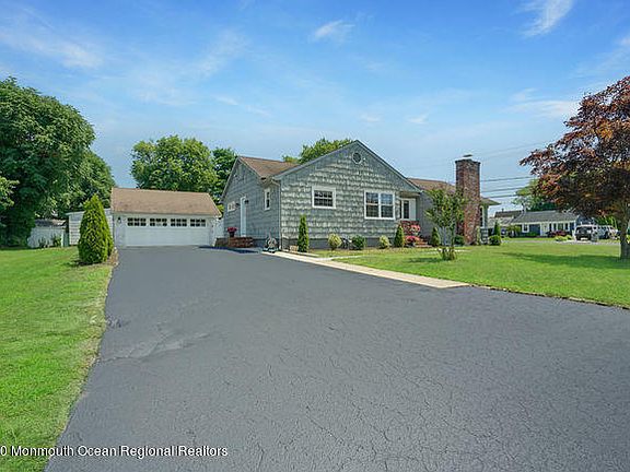 Have you been looking for a ranch with that special something? This one is it! Gorgeous kitchen with glazed kitchen cabinets & granite countertops. Updated baths and gleaming hardwood floors. Cozy up in the great room with tall ceiling. Full finished basement gives you additional living space. Resting atop a large corner lot that has vinyl fencing and a detached two car garage. Close to Shark River & the beautiful beaches of the Jersey Shore. Now is the time! Seller has approval for a pool (22x36) Call today! (Grass digitally enhanced, deck just removed and rear yard seeded)