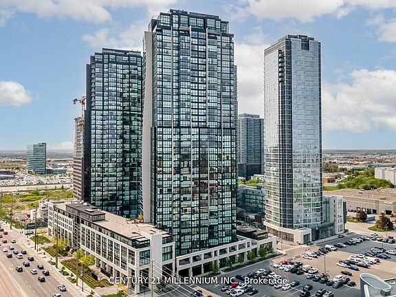 The total package in the heart of Vaughan @ Jane & Hwy 7. A complete condo spoiling you w/ 1,052 sqft 2 bed+ den 2 full bath & 2 tandem parking spaces! Greeted w/ soaring 9' ceilings, spacious foyer, laminate flrs t-out, Office/den w/ frosted panel wall & sliding dr, modern 3pc guest bath glass shower dr. Condo foyer opens up to fully upgrade kitch feat granite cntrs, bcksplash, s/s appli, island B/I sink & breakfast bar. Kitch effortlessly flows to the sun packed family sz LR/DR combo w/ Lrg window & where many you'll enjoy spending time w/ family & entertaining. XL Mstr retreat w/ Dbl closet door, custom wall wardrobe, & 4pc ensuite bath w/ deep soaker & sep shower. 2nd bdrm continues the laminate flrs feat an XL W/I closet. Locker conveniently located on same floor as condo & 2 parking spaces makes this a rare unbeatable condo smack dab in Vaughan's Central Hub. Unlimited shopping, dining, entertainment within minutes, public transportation & Hwy 400 & 407 at your door.