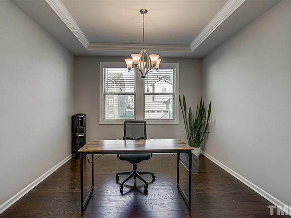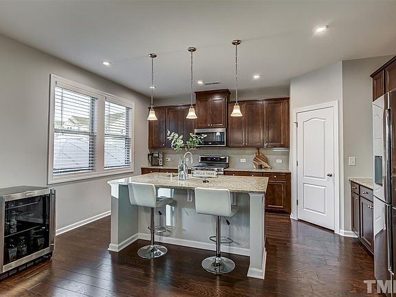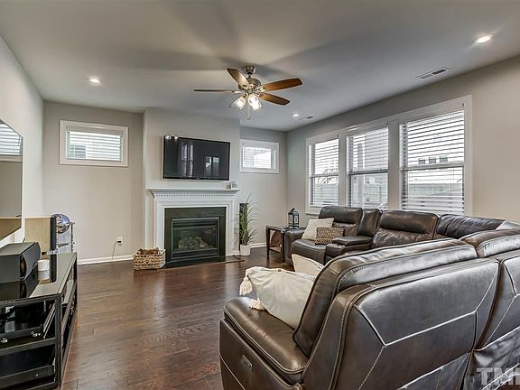 Immaculate & move in ready 5 bed 3 bath home in prime Apex community. Hardwoods throughout 1st flr. Spacious family rm. 1st floor guest suite. Chef's kitchen offers granite tops, s/s apps (double oven/gas cooktop), center island & tile b-splash. Owner's suite w/ trey ceiling, soaking tub w/ sep tile shower & custom WIC. Large loft area. Screen porch + oversized deck & patio. Extended 2 car garage w/ lots of overhead storage. Extra floored storage in attic. Nice corner lot. Brand new roof to be installed!
