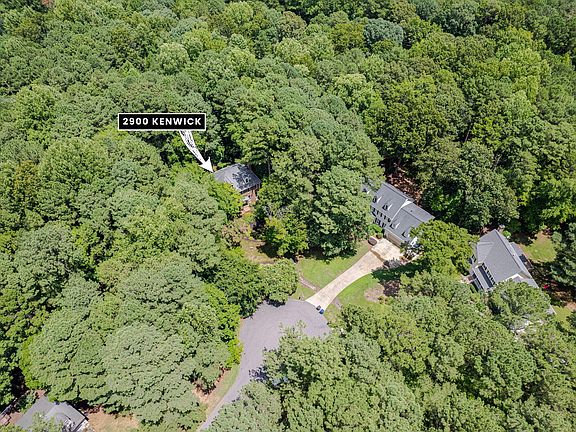 This is the part of town everyone covets! North Raleigh traditional brick home on almost two acres with privacy galore! 2900 Kenwick Court, a spectacular stately home with lush landscaping and mature trees within minutes of 540. Fresh paint on all trim & walls and all new carpet. If you throw big gatherings there is an effortless traffic flow inside and out with the deck opening to the sunroom and the family room within easy distance of the heart of the home, the kitchen, with all new quartz counters. Large primary bedroom with huge en-suite bath and two walk in closets! FINISHED ATTIC with walk in storage. If you need a dedicated office space (or even two) there is the perfect room downstairs off the foyer or in the finished attic. Peace of mind in some of these large system updates as well: SEALED CRAWLSPACE, UPDATED HVAC, UPDATED Anderson Renewal WINDOWS, WATER HEATER 2021. Roof has been replaced in the lifetime of the home but they do not recall the year. Irrigation system in place and low maintenance yard is Liriope Spicata and mowed as little as little as 3-4 times a year