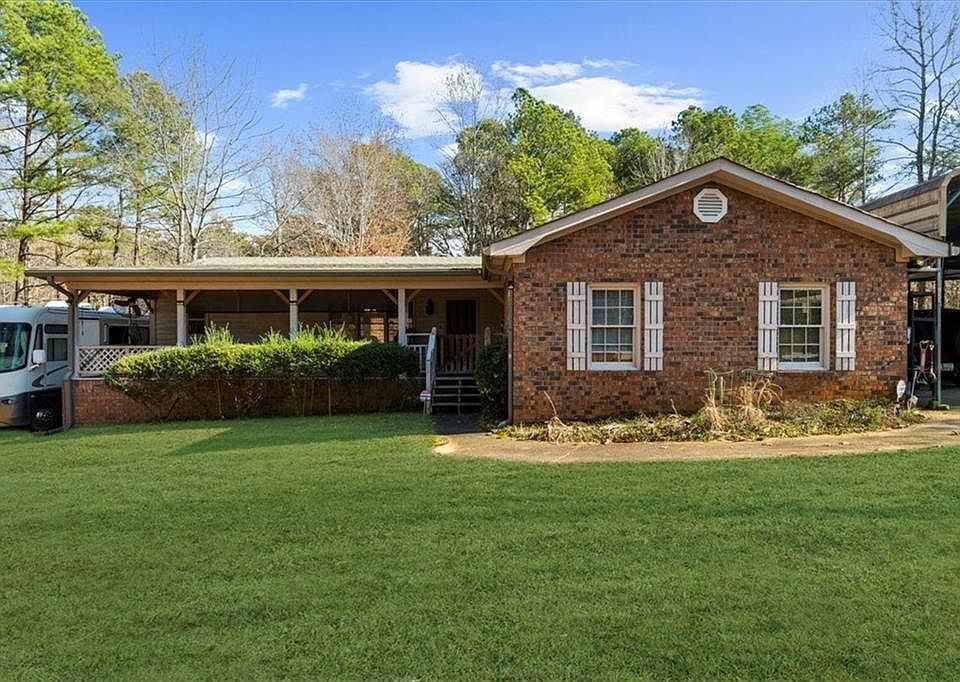 Welcome to 2900 Mount Vernon Rd, a spacious and well-maintained brick ranch situated on nearly an acre in Lithia Springs, just one mile from Sweetwater Creek State Park. A classic rocking chair front porch sets the tone for relaxed Southern living and provides the perfect spot to enjoy quiet mornings or unwind in the evenings. Inside, this 1,724 sq ft, 2-bedroom, 2-bath home features hardwood floors, generous room sizes, and an open living area with a cozy fireplace. The thoughtful layout and ample square footage offer flexibility for future customization, including the potential to create a third bedroom or expanded living space if desired. The kitchen is equipped with granite countertops and stainless steel appliances, and major updates provide peace of mind with a brand-new HVAC system (only 3 months old), newer water heater, a 10-year-old roof, and a sealed crawlspace with added insulation for improved efficiency. The standout feature is the exceptional RV setup: a massive 50’x20’ covered carport with concrete pad and full 50-amp water, sewer, and electric hookups for a large motorhome, plus an additional RV pad with full hookups on the opposite side—ideal for RV enthusiasts or income potential. Additional highlights include a two-car garage, wheelchair-accessible rear entrance, LeafGuard gutters, and ample outdoor space to enjoy. A rare opportunity offering comfort, versatility, and lifestyle appeal in a prime location.