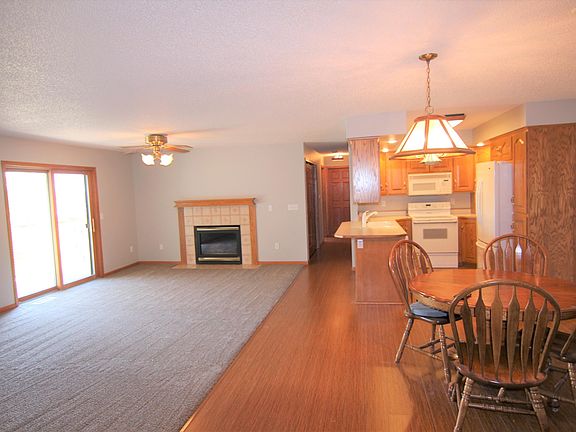 Carefree Living in this spacious 2 bedroom, 2 full bathrooms condo in North Bismarck just off Century Ave. The condo is located on the upper level providing an EAST VIEW overlooking the park. It has an elevator & an open floor plan in the living/dining/kitchen area with patio doors to your private outdoor balcony. The condo has just been completely painted and has some new flooring as of 6/19. The kitchen has a breakfast bar & custom cabinets, the living room has a GAS FIREPLACE, you have your own laundry in your condo - washer & dryer included. The master bathroom was modified with a walk-in tub. The master bedroom has a walk-in closet. There is six panel Oak doors throughout. Spacious pantry area off kitchen area. 1 attached garage, 1 detached garage and a reserved parking spot with an outlet. Secure building, no pets allowed and is age restricted 55+. The 160.00 monthly condo fee takes care of the building insurance and common maintenance, heat, lawn care, snow removal, water, sewer and garbage. There is an elevator in the building.