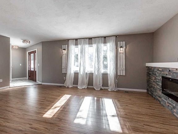 Don't miss out on this newly renovated home nestled on just under 3 acres, in Willard school district! Highlights of the property include a mother-in-law suite upstairs with the potential for a 5th bedroom. Live water access from Clear Creek provides not only a beautiful view, but a second water source to the home. In addition to having a 3+ car garage, there's an RV space with hookup. Once you step into the home you're greeted by natural light, an open living area, and a massive fireplace with mantle. Venture into the kitchen featuring granite counter tops, tile back-splash, and a large bar that opens to the spacious dining area. Step down into one of the bedrooms that would be perfect for a home office with expansive built in shelving. The home includes 4 remodeled baths.(See More)