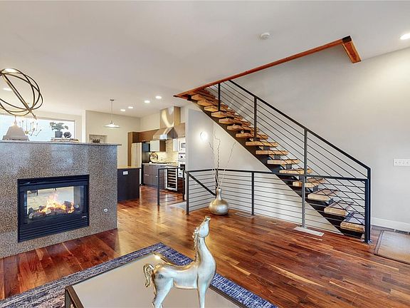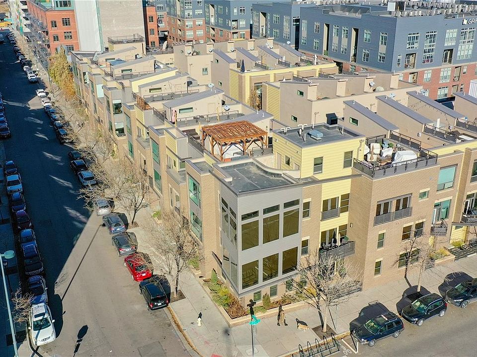Exceptional three story contemporary townhome in Union Station North. Easy walking distance to Coors Field, Avanti's, River Front Park, McGregor Square, King Soopers, Union Station, LoDo, RiNo and Highlands. This home sits in a great location on Inca street, close to everything yet quiet with mature street trees. Designed with attention to detail, this home is wider than most contemporary townhomes in Central Denver, giving it an open / inviting feel. With 10ft ceilings, large windows and a custom built steel and wood open rail staircase, the living space is beautiful and functional. The main living level, elevated above the street, has an elegant feel with real walnut wood floors, a double sided fireplace, custom stone work, built-ins, and a large high end kitchen. The kitchen features high end Jennair and Viking appliances including a wine refrigerator. Large floor to ceiling windows flood the space with natural light and a small balcony provides a view of the trees on Inca Street. The upper level features two large bedroom, each with their own en suite baths. The primarily bedroom has a Juliet balcony, newly updated 5 piece bath, and a large walk in closet with custom built-ins. All of the baths have been updated with important improvements over the original finishes done by the builder. The entry level features a side by side two car garage, entry hall, plenty of storage, a 3/4 bath and a third bedroom that would function well as a guest room or home office. The home is topped off with an exceptional roof top deck that functions as an additional outdoor living room. Built to support a hot tub, the deck is large and multi-leveled with room for plants, dining and seating. Come see this wonderful home in the city.
