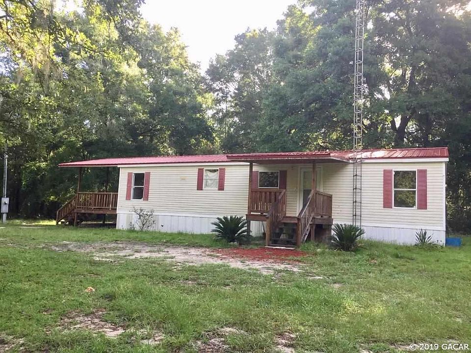 Secluded 5 wooded acres with double wide provides lots of privacy. 5 year old roof. HVAC is 6 months old. New flooring in kitchen. New tub in master bath. Large covered porch.partially fenced. Close to springs. Convenient to High Springs. Gilchrist county taxes. Seller is very motivated to sell. Bring offers.
