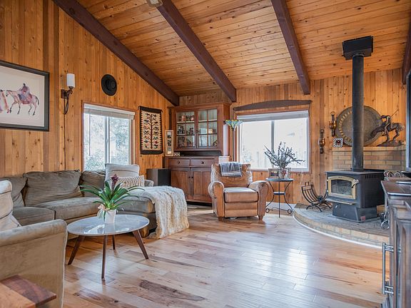 Awesome single-level home on a flat lot, in a great location! Gorgeous hard-wood hickory floors complement the rustic lodge-style living room highlighted with exposed beams. Adding warmth to the living room is a certified wood stove set on a brick hearth with its heat ducted to the bedrooms. The electric forced air furnace, heat pump & air scrubber are all new too! There are new quartz counter tops in the kitchen along with a new range, hood & refrigerator. A new roof was installed in 2021 & the attic insulation has been bumped up to R50. The bathrooms have just been remodeled and the bedrooms have new hardwood flooring. The backyard is fenced & has fruit trees along with well-established perennials. A nice two car garage & a circular driveway with room for your RV.