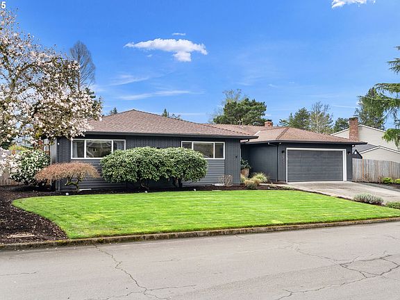 Thoughtfully renovated in 2020, this 4-bed, 2.5-bath one-level home offers a versatile floor plan with two living spaces and two dining areas, creating the perfect balance of comfort and functionality in the highly sought-after Oak Hills neighborhood. The fully remodeled kitchen features quartz countertops, open shelving, and custom cabinetry with pull-out shelves, seamlessly connecting to the casual dining area and the formal dining room, complete with a dry bar and extra storage. The vaulted family room showcases rich wood paneling, a beautifully redone concrete fireplace, and a large sliding door leading to the backyard, while the additional living space is warmed by a new hearth and mantle, making it ideal for gatherings or cozy relaxation. The spacious primary suite includes a stunning bath complete with a dual vanity and a beautifully updated walk-in shower. The three well-proportioned secondary bedrooms are filled with natural light and conveniently located near a remodeled bath in the hall. Outside, the incredible backyard offers a new concrete patio, fire-pit area, large shed for storage, raised garden beds, and mature landscaping. Oak Hills is truly special, featuring a community center, pool, greenway walking paths, and beloved Fourth of July traditions with fireworks. Conveniently located near Nike, Intel, and top-rated schools, this home is a must-see!
